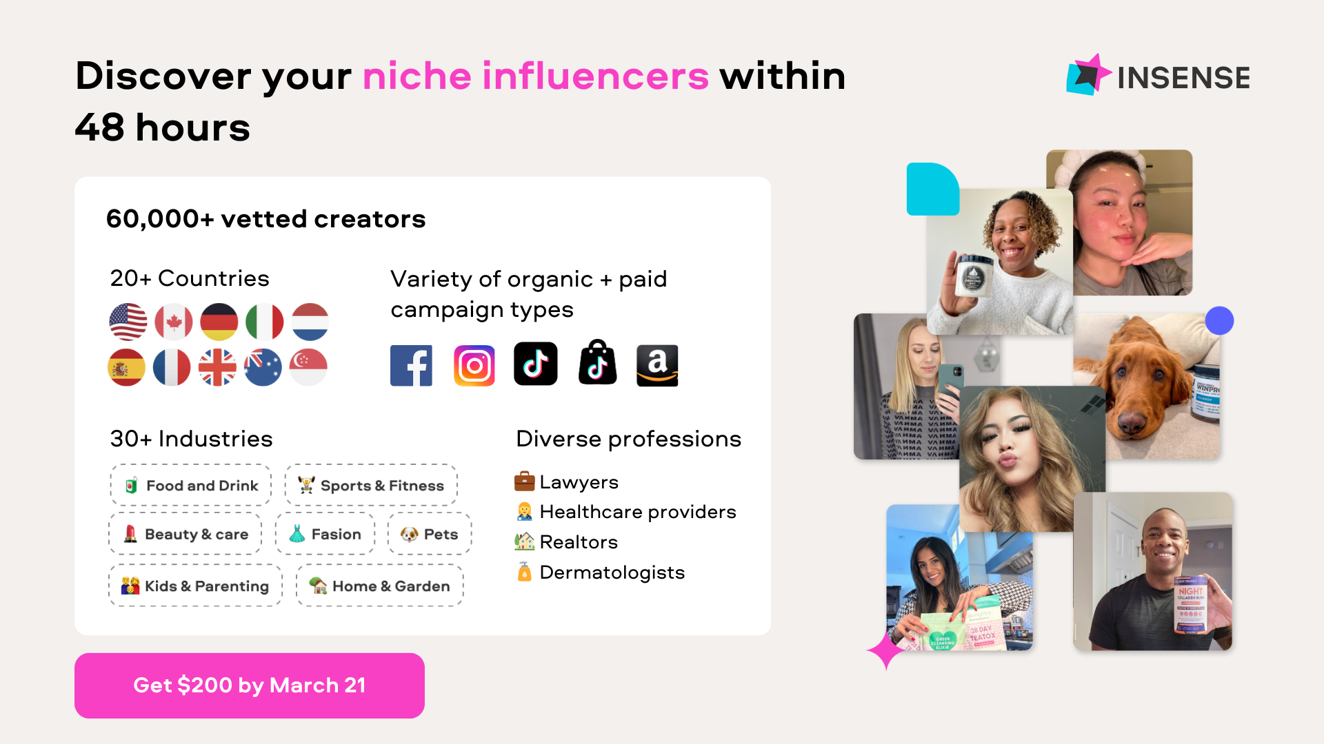 Solution: You need Insense’s carefully vetted marketplace of 60,000+ UGC creators and micro-influencers from 20+ countries across the USA, Canada, APAC, EMEA, and Latin America. 2,000+ brands including Revolut, OKX, and Paysend are using Insense to find their perfect niche creators and run diverse influencer collaborations.